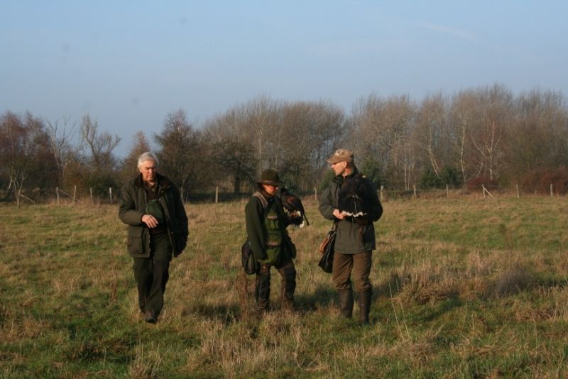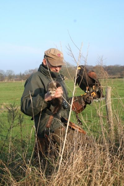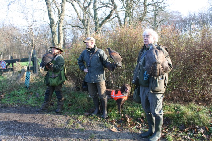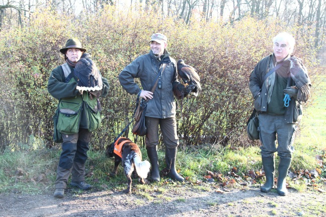 Am 22.12.2013 begleiteten Ronny, Kathrin und ich mit unseren Vögeln Antonius bei seiner Führung "Mit den Augen des Habichts" in den Grunewald. Wir hatten für diesen Tag eine Ausnahmegenehmigung zum Beizen auf Kaninchen auf dem Dahlemer Feld. Die Führung war wieder gut von Jung und Alt besucht und, nachdem Antonius mithilfe eines Bussard-Präparates Einiges zur Biologie der heimischen Greifvögel erklärt hatte, wanderten wir gemeinsam zum Dahlemer Feld. Kathrin und ich flogen unsere Harris Hawks in Kompanie und Linus konnte ein Kaninchen schlagen. Als Nächstes hatte Ronny's Habicht mit einem scharfen Jagdflug Erfolg. Hannah musste etwas länger warten, da der Frettmann etwas länger im Bau verharrte, konnte dann aber auch noch ein Kaninchen fangen. So waren alle Falkner zufrieden und die Zuschauer hatten "Beizjagd live" erlebt.