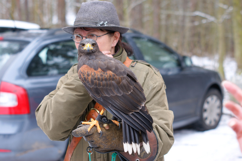 Am 23.03.2024 fand das Fest anlässlich des Frühlingsanfangs sowie des Internationalen Tag des Waldes in der Revierförsterei Blankenfelde statt. Dem regnerischen Wetter zum Trotz konnten viele Interessierte empfangen werden, denen Karl-Heinz Dreher, Lilli Birresborn und Dion Lunow Rede und Antwort standen. Die Harris Hawks, ein Weib und ein Terzel, sowie ein Sakret waren in Kombination mit den Frettchen ein Publikumsmagnet. Zusätzlich demonstrierte Lilli mit ihrem Falken das Beireiten zum Federspiel, was auf großes Interesse stieß.