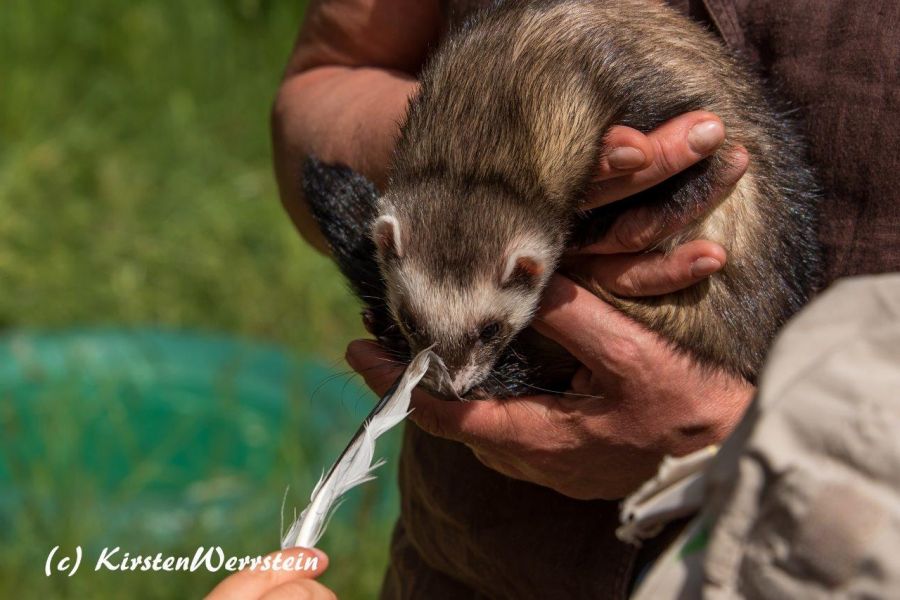 Am 22. Mai fand im Ökowerk Teufelssee ein großes Fest statt. Traditionsgemäß hatte der DFO Berlin auch diesmal wieder einen Stand dort aufgebaut. Da meine Vögel diesen Sommer Nachwuchs haben und deshalb an keiner Öffentlichkeitsarbeit teilnehmen können, fragte ich bei den Kollegen nach und war wirklich überwältigt von der regen Teilnahme. Karl-Heinz, Kathrin, Stephan und Andrea K. kamen mit ihren Harris Hawks und Kuno, Andrea B., Antonius und Juri waren zur Unterstützung dabei. Karl-Heinz hatte auch noch Präparate mitgebracht und unsere Aufsteller rundeten den Stand ab. Ich hatte meine drei Frettchen dabei und auch für unser leibliches Wohl hatten alle Leckeres zusammengetragen. So haben wir einen schönen Tag dort verbracht und konnten vielen Interessierten aller Altersklassen die Greifvögel und die Beizjagd näher bringen.